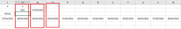 'se evalúa qué día es y se busca esa fecha en fila 4