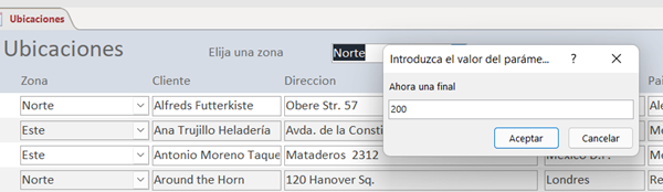 Tengo una base de datos, en la cual tiene un desplegable por zonas... Cada zona tienen una serie de calles, con superficies totales y modulares... Me gustaría poder seleccionar un intervalo de valores, pej (superficies entre 500 y 1000 ), y que aportara el resultado de las superficies totales y las modulares (dos columnas)