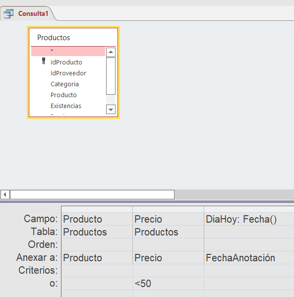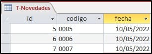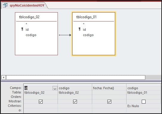 Tengo una consulta que muestra la diferencia entre 2 tablas y guarda el resultado en una tabla T-Novedades. Necesito que esta tabla T-Novedades contenga los registros con la Fecha () del sistema de cuando se corrió la consulta, para saber cuando se produjo cada novedad, ya que la consulta se va a ejecutar periódicamente, y las diferencias se van a ir agregando en dicha tabla. Esto lo estoy haciendo en Access.