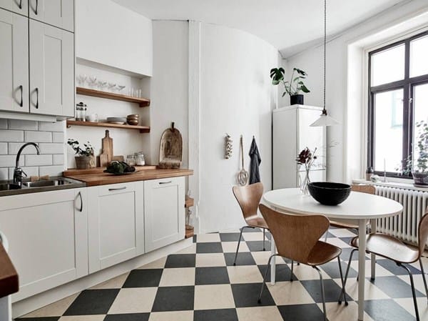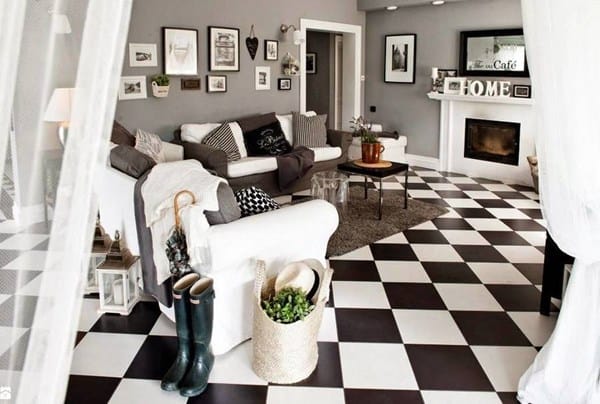 Mi hijo se ha comprado un piso para vivir solo, con el suelo de mármol blanco y gris tipo damero, las ventanas son de aluminio blanco y las puertas color miel, estoy intentando de dejarle un piso mono, pero con ese suelo no sé como decorar nada, paredes, ¿muebles... Podéis echarme una mano? Me gustaría poner fotos pero no se como se hace?♀️