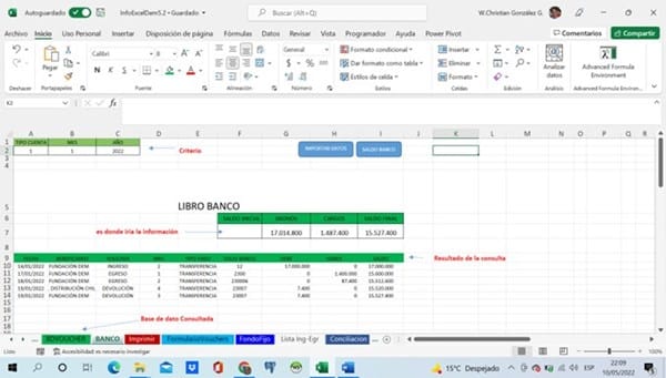 Quien puede ayudarme a conseguir el saldo del mes anterior y dejarla almacenada en una celda. Tengo una una hoja que funciona como base de datos llamada BDVOUCHER, desde la hoja BANCO y a través de una consulta avanzada extraigo de BDVOUCHER la fecha, titular, los cargo y abono, lo que pretendo es que al filtrar por ejemplo el mes mayo me calcule el saldo final del mes de abril para utilizarlo como saldo inicial del mes consultado. Gracias...