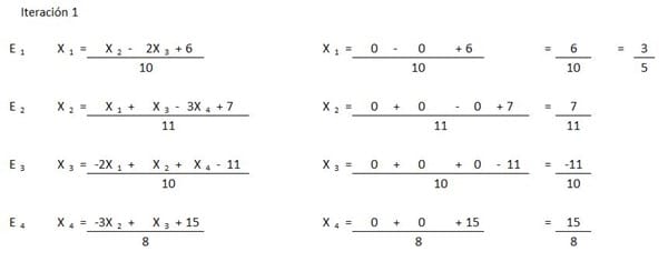 4. Sustituir la primera iteración en cada ecuación para encontrar la segunda iteración.