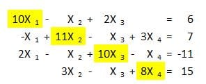 3. Reemplazar la x's por 0 para encontrar la primera iteración.