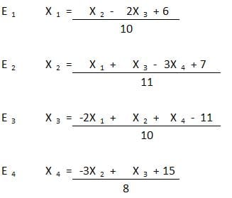 3. Igualar a 0 las Xs y obtener la primera iteración: