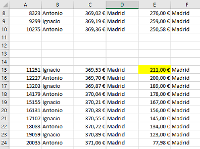 Tengo una tabla en Excel y quiero a partir de 250€ me inserte 4 líneas, lo he intentado de varias maneras y no lo consigo, el código que pongo es el siguiente: