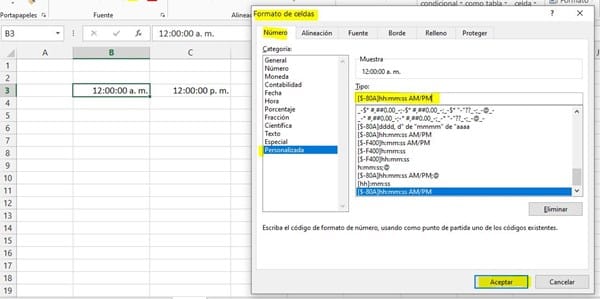 Favor facilitarme una macro Excel la cual al introducir en una celda con formato persolanizado la hora “00:00:00” la convierta en “12:00:00”.
