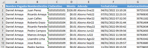 Este es un ejemplo de la base de Excel la cual puede tener n cantidad de registros