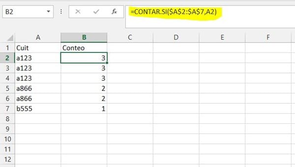 Tengo una planilla en excel la cual tiene una columna nº de cuit, de alguna manera tengo que identificar si el cuit que se repite. Ya sea marcarlo o de alguna manera saber cuales son los repetidos.