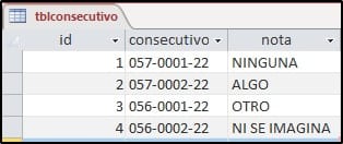Y tengo una tabla de consecutivos