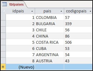 Como Colombia ya tiene 2 consecutivos me asigna el 0003. Ahora tomo otro país.