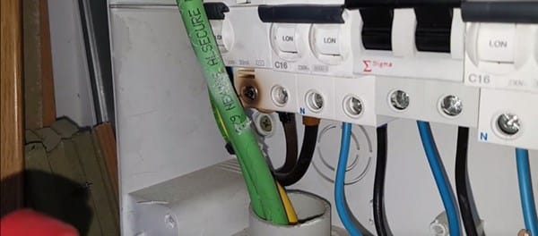 Para ello el instalador oficial que lo ha realizado ha tenido que alargar el cable de la derivación individual ya que era difícil de manejar y lo ha alargado con cable de 6mm² tanto la fase como el neutro.