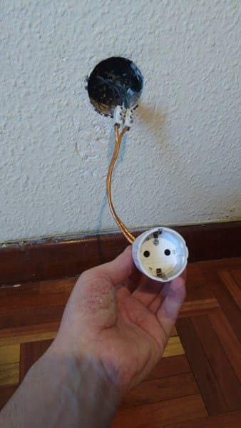 Tengo un enchufe que no funciona. Es un enchufe muy guarri, simplemente unos cables conectados a la toma de pared por un lado y a una toma hembra por otro. Estéticamente es muy feo, pero como está detrás de un sofá y no se ve no me importa.