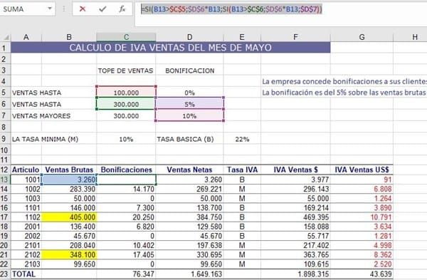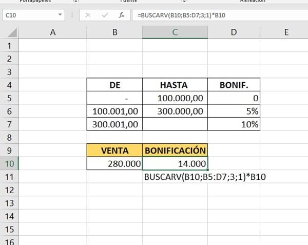Tengo esta fórmula que no puedo resolver para calcular las bonificaciones