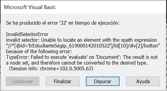 "//*[@id='trEstudianteSegip_719000122011530']/td[10]/div[2]/button" y posteriormente pasando al textbox2 con :
