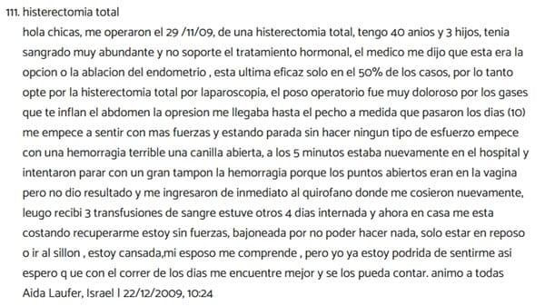 Hace dos meses me hicieron una histerectomia subtotal debido a una metaplasia ósea e hiperplasia endometrial. No tengo hijos, tengo 36 años, tenia abundante sangrado y el ginecólogo que me operó me dijo que solo me iba a conservar los dos ovarios para evitar la menopausia por mi edad. Lo qué pasa es que todo salió bien en el momento pero hace una semana se me salió un punto de la sutura debido a un seroma por lo que estoy con antibióticos y curaciones y botando unos manchones marrones por la vagina. Fui a ver otro ginecólogo mientras puedo viajar a ver el mío que está en otra ciudad y me dijo que no tenía por qué sangrar ni botar nada, que no se explica por qué me dejaron el cuello del utero si mi problema era el sangrado, que solo se justifica que me dejaran los ovarios por mi edad y que siguiera con las curaciones y antibióticos por el seroma y que visitara a mi médico apenas pueda. Lo que me parece extraño es que mi médico tratante antes de operarme me dijo que me dejaría solo los ovarios y que estos, al producir hormonas producían unos manchones todos los meses pero que en sí no eran una menstruacion. En resumen estoy confundida. Agradezco que alguien me pueda aclarar las dudas. Me hicieron biopsia y tenía: endocervicitis, pólipo endometrial.