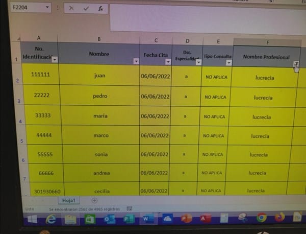 Al momento de filtrar cada profesional, todos tienen diferentes cantidades de registros a su nombre (filas)