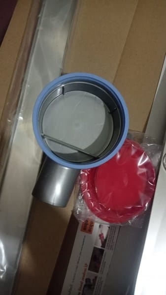 Se ha instalado un plato de ducha de obra. El plato queda encima de una arqueta de desagüe y la cazoleta de desagüe del plato desagua directamente, solo tiene conectado un codo de 90° de PVC.