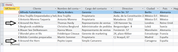Private Sub Form_BeforeUpdate(Cancel As Integer) DoCmd.SetWarnings False DoCmd. RunSQL "insert into clientes(cliente, nombrecontacto, cargocontacto, ciudad, pais)values(cliente, nombrecontacto, cargocontacto, ciudad, pais)" DoCmd. RunCommand acCmdUndo End Sub