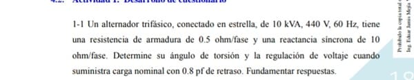El tema puede simplificarse dada la diferencia entre la resistencia de armadura y la reactancia sincrona.