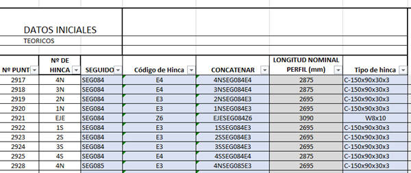 Tengo una tabla que debo ir indicando el numero de tracker y el numero de hinca y quisiera que me rellenara de forma automática la longitud nominal del perfil que se encuentra en otra hoja de la misma tabla, es decir que con 2 criterios de búsqueda de un tercer valor
