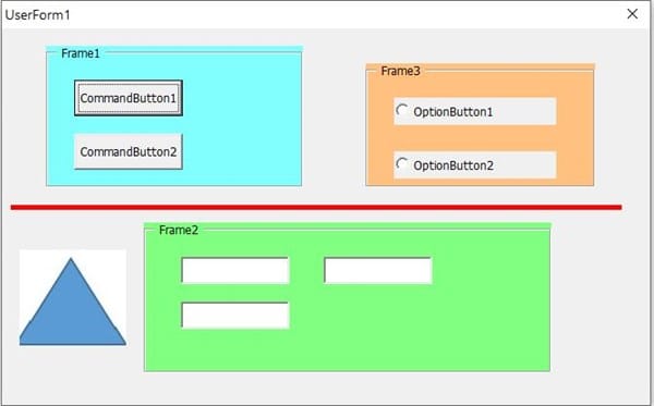 Echo de menos poder insertar en un UserForm una forma; por ejemplo una línea para separar 'zonas de trabajo' (a la que después daría color...)... Un rectángulo sin relleno para agrupar conjuntos de botones de comando (al que también después daría después color)...