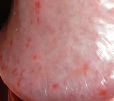 I. Hola Robert, aunque no soy experto en mi ignorancia pienso que pueden ser un brote de balanitis o bien hongos. En mi caso particular necesitaría ver una imagen de la zona para poder opinar, o al menos que pudiera describirnos el aspecto de los puntos, pero por favor, díganos si los círculos pudieran tener una semejanza con alguna de las dos capturas, correspondientes a balantis,