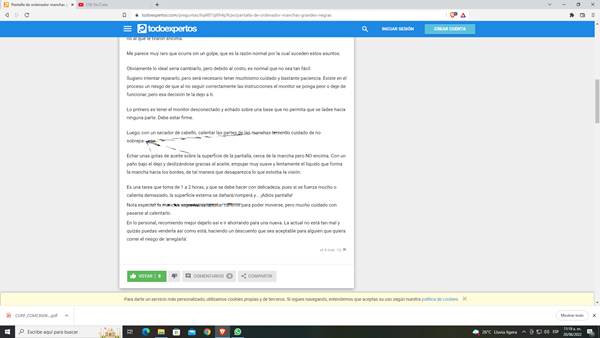 Alguien me podrá decirme, cuando entro al navegador aparece en mi pantalla manchas como de tinta regada