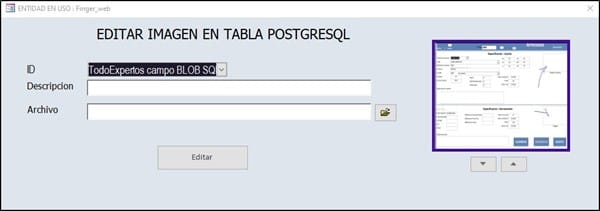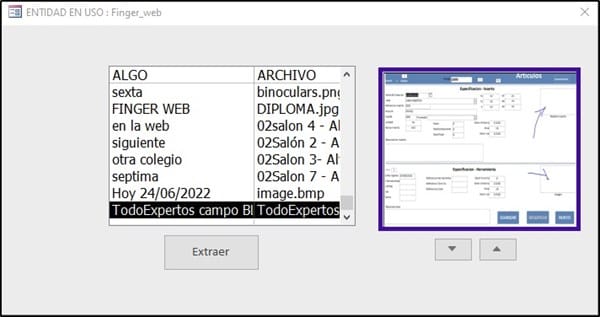 Del cuadro de lista seleccioné TodExpertos campo BLOB y efectivamente tengo la imagen el control. Observe que si hago clic en Extraer puedo descargar la imagen al PC.