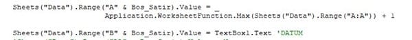 Sheets("Data").Range("B" & Bos_Satir).Value = TextBox1.Text 'DATUM