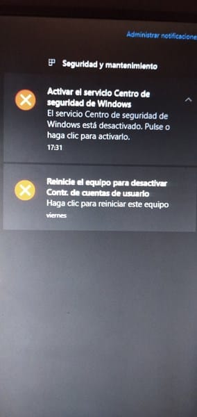Desde hace unos días no puedo acceder al centro de seguridad de Windows 10 porque se ha desactivado.