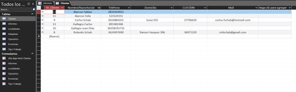 El Cuadro_combinado41 toma los datos desde la tabla CLIENTES y los datos desplegados en el mismo son del campo Nombre/RazonSocial. Arriba se muestra una captura de la tabla CLIENTES.