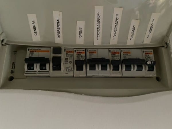 Llevo unos días que al poner el lavavajillas, salta la luz. Tengo el cuadro dividido como veis en la foto, y al poner el lavavajillas, cuando lleva un rato, salta el diferencial. Bajo el botón que dice lavavajillas, campana y micro, y ya puedo subir el diferencial.