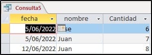 Como hacer una consulta access que agrupe cantidades por nombre y fecha