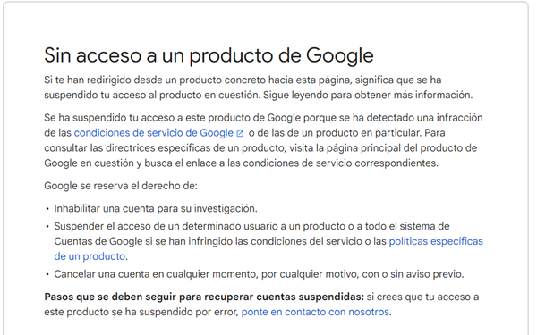 Cuando intento acceder me sale una advertencia de servicios de google y no hay manera de acceder.