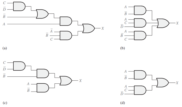 Determine cuales de los circuitos lógicos de la Figura 1, son equivalentes