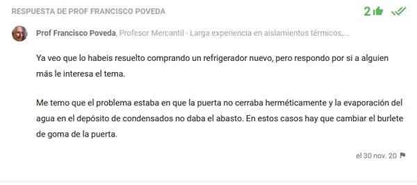 ¿Alguien me puede decir por que mi frigorífico no evapora el agua el compresor?