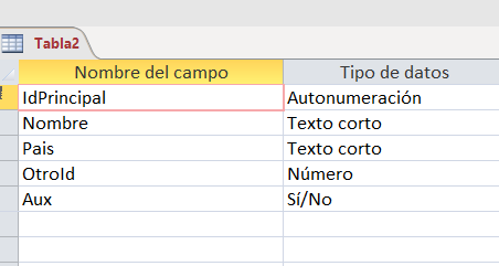 Quiero crear una tabla que contendrán dos campos autonuméricos.