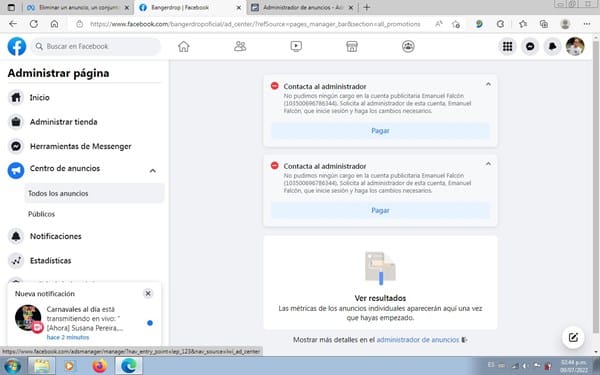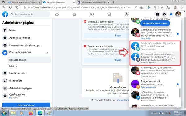 Hace algunos días he mencionado en todo expertos por un inconveniente que se me esta presentando en facebook y por lo que estuve investigando la raíz del problema y porque se me restringieron algunas funciones de la red social por infringir sus normas comunitarias, he encontrado un anuncio sobre Sonidos proyecto K el cual no he publicado debido a las notificaciones que me fueron llegando encontrandose pendientes de pago, tengo las sospechas que alguien ha ingresado a mi cuenta con la intención de robar también mis datos, pero como dije en la pregunta anterior no tengo acceso al marketplace donde se publican los artículos que se ponen a la venta a diario desde distintos grupos, las paginas la cual administro se anularon las publicaciones y no puedo compartir mis intereses en los grupos en el cual soy miembro, ya me he contactado con el soporte técnico de facebook reiteradas veces para solicitarles que procedan nuevamente a la revisión del mismo, pero aun espero su confirmación, hace algunos meses atrás me ha ocurrido algo similar con las paginas pero que con suerte se pudieron recuperar, dejo algunas capturas sobre lo sucedido y si puedo realizar alternativamente algún tipo de denuncia para casos de robo de identidad y cuentas.