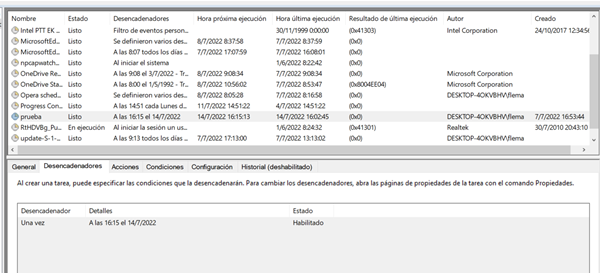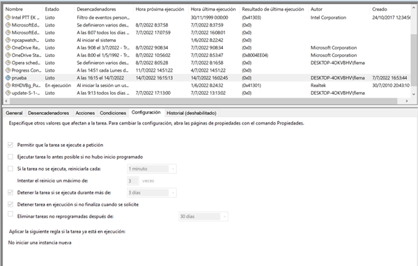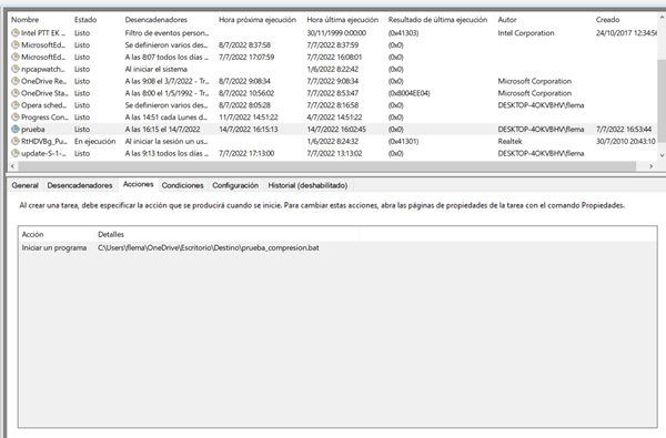 Estoy intentando crear un .bat que realice una copia de seguridad de una base de datos, que copie la base y la comprima en un archivo .rar con el mismo nombre de la base, crear una tarea programada para que lo realice diariamente, el inconveniente es que no logro que comprima el archivo, simplemente se copia, el programador de tareas simplemente se salta el comando, estoy trabajando en Windows 7 y Windows 10, en ninguno funciona con la tarea programada, si lo ejecuto manualmente si funciona.