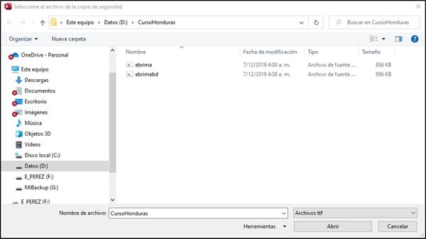 Buenas tardes, Eduardo. Tengo construida todo la programación que me propones y efectivamente funciona, es decir, valida el SI/NO está instalada la fuente y si no está, he modificado el código para que la instale desde una ruta concreta C:\......\....ttf, pero me sale un mensaje de error que dice: <No hay nigún programa registrado para abrir este documento>. Realmente, lo que me interesa es configurar un botón dentro de un formulario que llame con un FolloHyperlink al archivo ttf que tengo alojado en una ruta de C:, y lo instale, pero sale ese error que te comento. Gracias