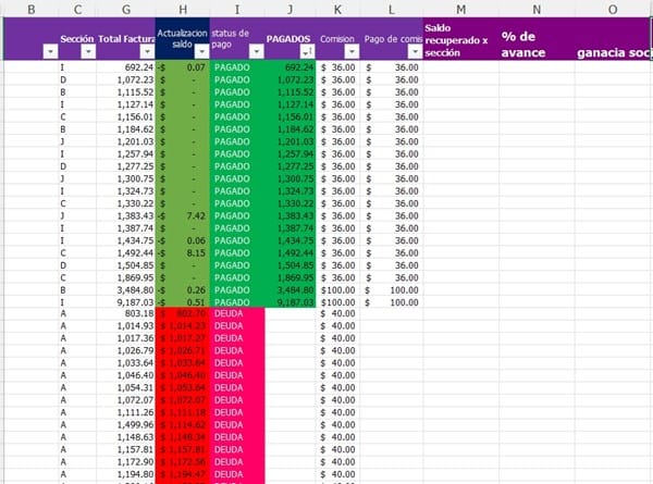 1 me gustaría poder hacer que al momento de que la columna I que está condicionada a la columna H dijera PAGADO El saldo de la columna G se pasara a la columna J ya que la columna J es con la que yo monitoreo el avance de mi equipo y que al mismo tiempo la comisión de la columna K se pasará a la columna L.
