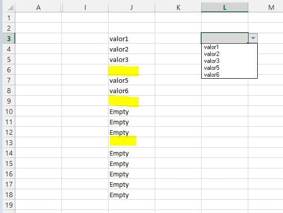 Tengo un rango de celdas desde J3……. J18, que desde la celdas J3…J9 con data y desde la J10 …. J18 con valor Empty, Detallo valores del rango: