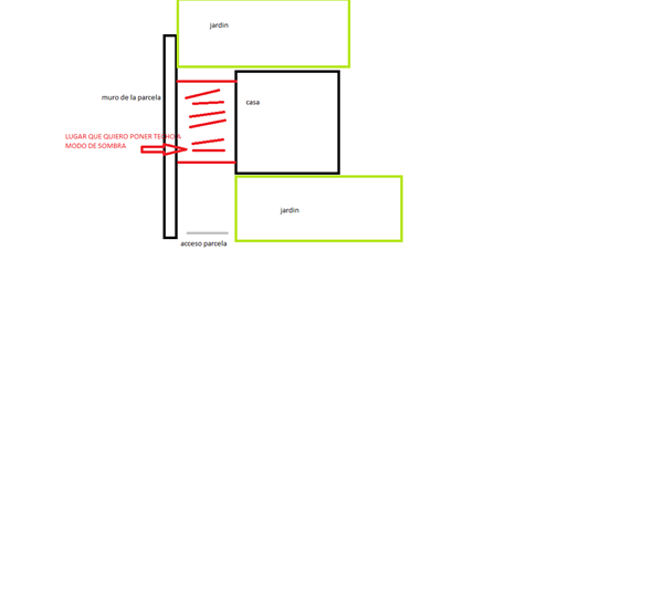 He adquirido recientemente un chalet independiente en una urbanización. El chalet dispone de una plaza de parking dentro de mi parcela, en el jardin. La plaza de parking está delimitada a un lateral por la propia fachada de mi casa y al otro lateral por el muro de mi parcela que colinda con la parcela del vecino. El caso es que pega el sol y el coche está al sol todo el día, quería poner un techado tipo panel sandwich que vaya de mi fachada a la fachada de la parcela. Por la comunidad no hay problema lo que no quiero es tener problemas con el ayuntamiento. Estaría abierto por delante y por detrás. Vamos sería solo el techo porque las dos paredes ya existen ya que es el hueco entre la casa y la parecela. Si no se puede ese material ¿habría otro tipo toldo que pudiera ponerse? Solo quiero ponerle sombra al coche y la moto. Saludos y gracias. Pongo esquema.