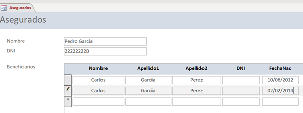 Tengo un pequeño problema. Estoy haciendo una base de datos de seguros.