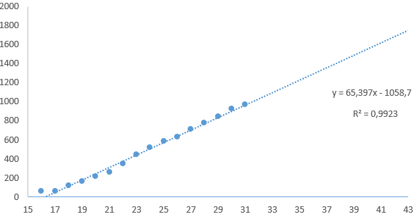 el valor de X lo obtengo gracias la formula =ESTIMACION.LINEAL