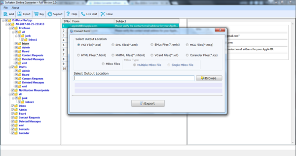 3. Busque una vista previa de todos los elementos dentro del archivo Zimbra TGZ. Ahora, presione el botón Exportar.