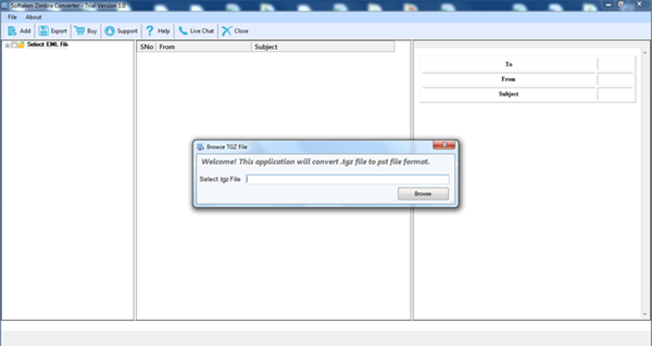 2. Explore el archivo Zimbra TGZ requerido que desea transformar en un archivo PST de Outlook.