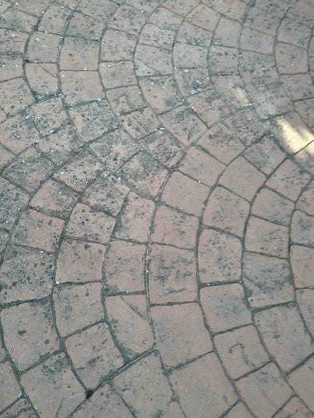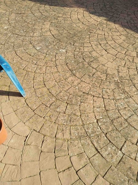 Pues tenemos un patio de unos 15m2 con hormigón impreso. Parece que no se le ha dado mucho mantenimiento, y aunque a nivel de estructura parece en condiciones, está sucio y feo.