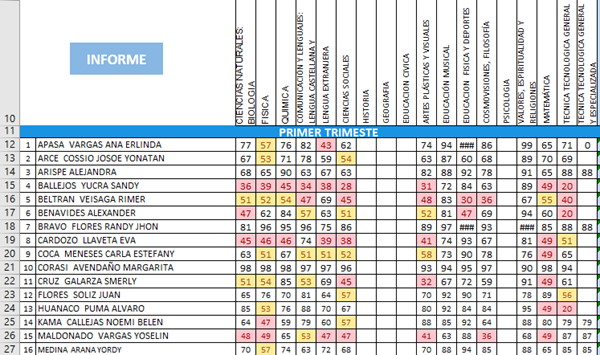 Cada area es un diferente archivo (Sociales, Lenguajes, ingles)