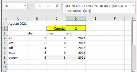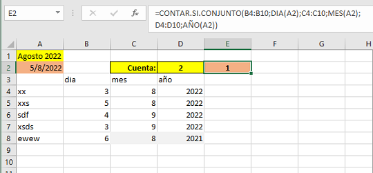 ¿Cómo contar por 3 columnas fecha y mes, año en Excel?